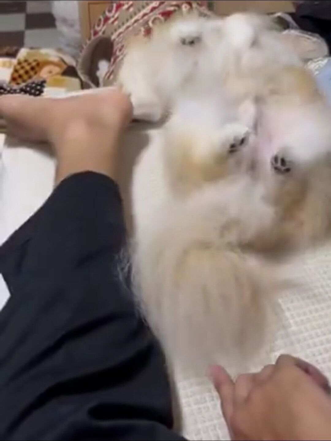 突如として足バトルが開幕したがへそ天させたので飼い主の勝ちです pic.twitter.com/Bct7HIuXh6