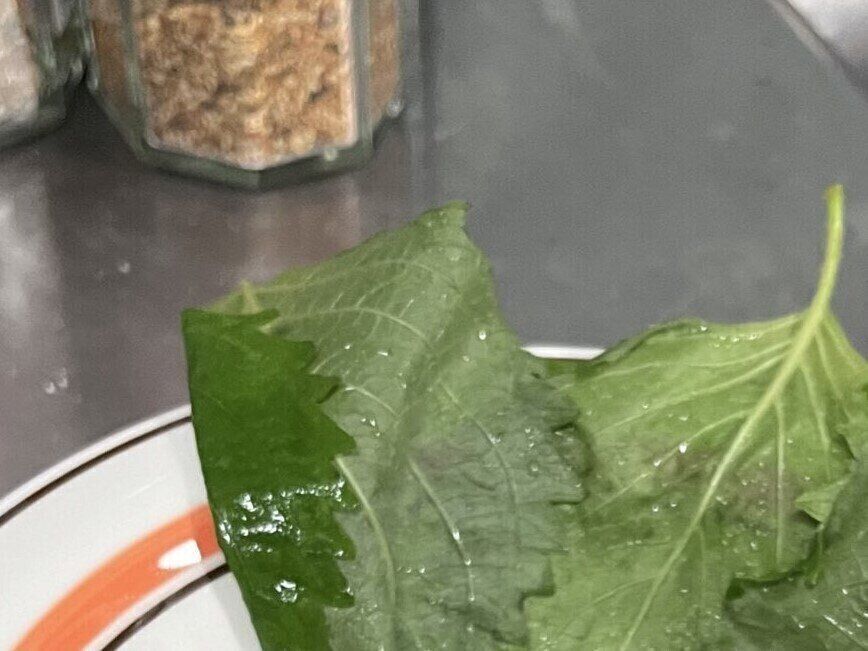 星眉さんはタレがのったお皿の写真とともに「餃子を酢コショウと大葉で食べたら美味しいはずと思って用意したら、幼少期に公園でやった原始人クッキングのとほぼ同じビジュアルになった」とコメントを添えました。