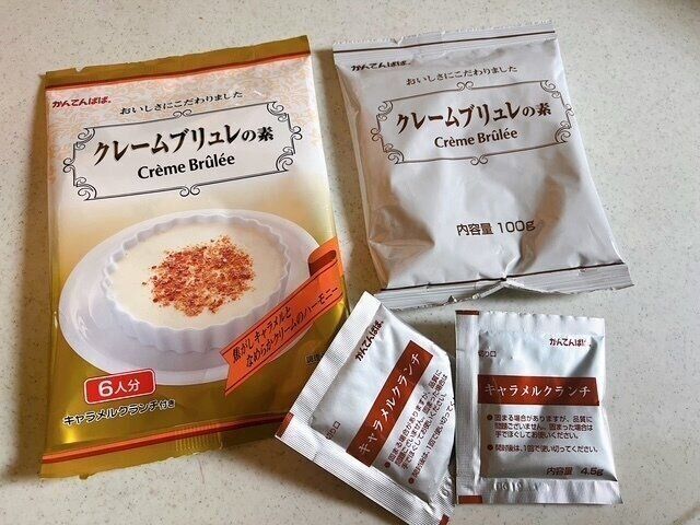 混ぜるだけで簡単につくれる「クレームブリュレの素」を。これは本当においしかったので超おすすめ。