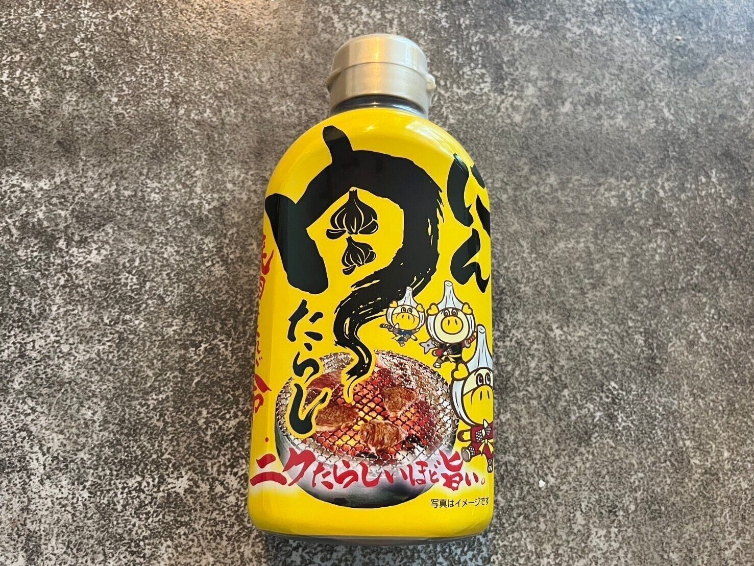 続いてご紹介するのは「にん肉たらし 268円」。肉たらしと比べるとサラッとしていて、よりにんにくの風味が際立つタレです。原材料に豆板醤が使われているので、中辛の焼肉のタレのイメージでしょうか。辛さはあまり感じないので、子どもでも食べられましたよ。