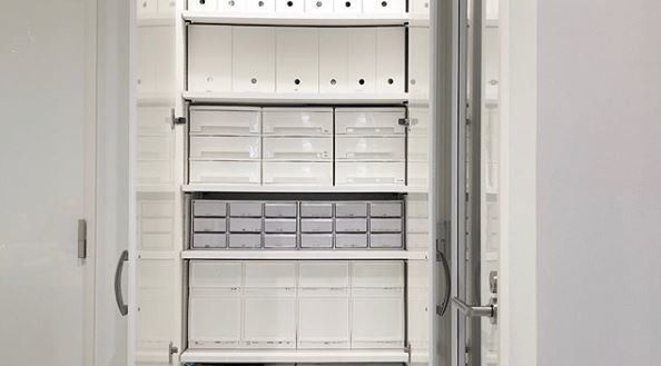 パントリー:ストック品をマルチケースに分けて