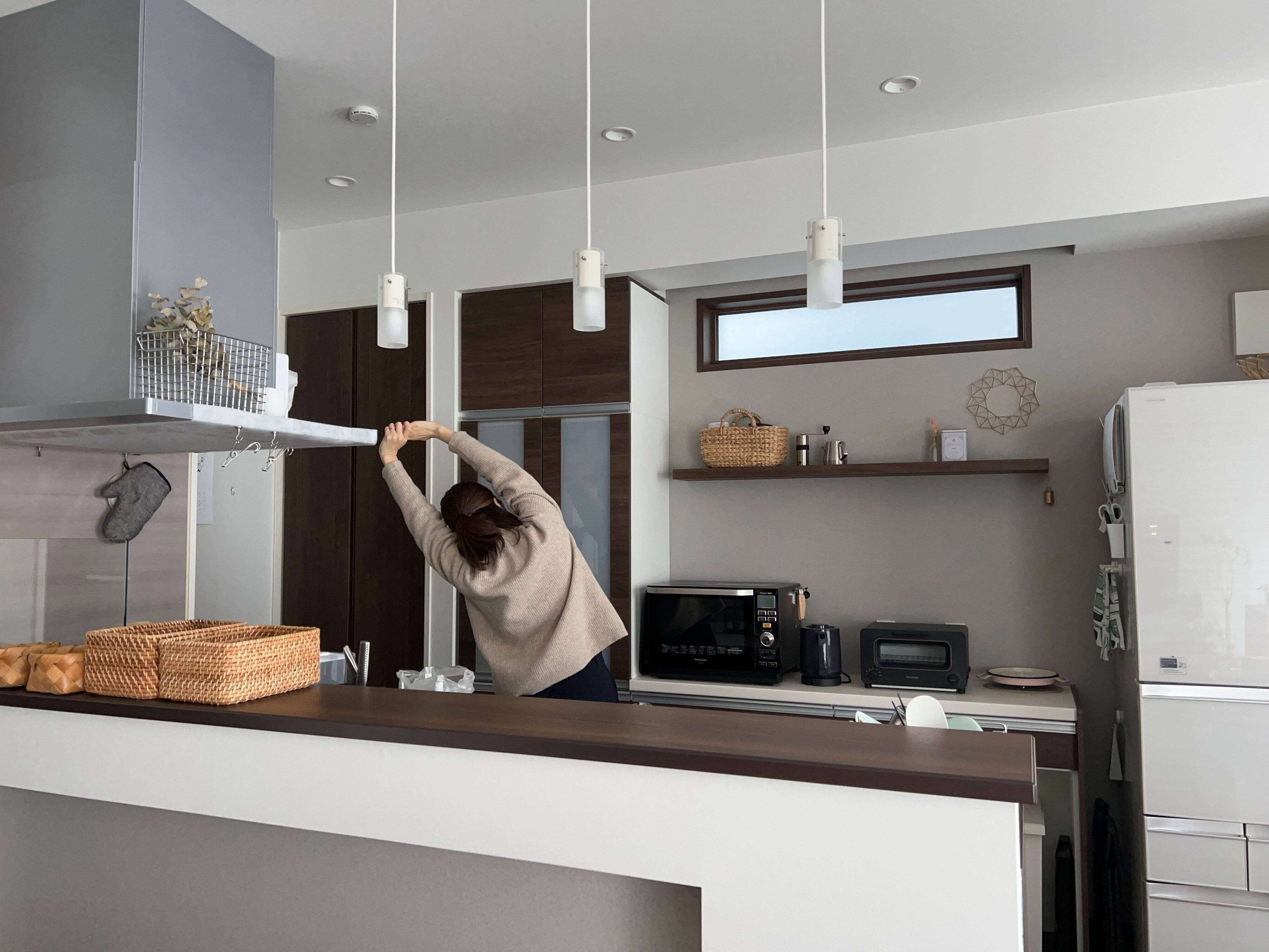 ウエアに着替えたり、ヨガマットを敷いたりする必要はありません。家族が起きてくるまで、お湯が沸くまで、お味噌汁が温まるまでの隙間時間を使って、睡眠や寒さでガチガチになった身体をほぐす準備運動のような感覚で、キッチンに立ちながら、スリッパを履いていてもできるストレッチをします。屈伸をしたり、手をあげて伸びをしたり、首を上下左右に向けてみたり…身体を伸ばすことで、血流が良くなり、身体が温まってくるのが分かります。余裕があれば、床に座ってストレッチをするのもいいかも。合間に白湯を飲むのもいいですね。
