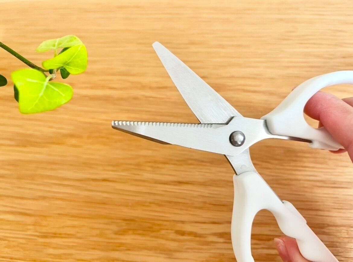 こちらの商品は、ハサミの刃の部分にも特徴があります。なんと一般的なハサミとは違い、片方の刃だけギザギザになっているんです。