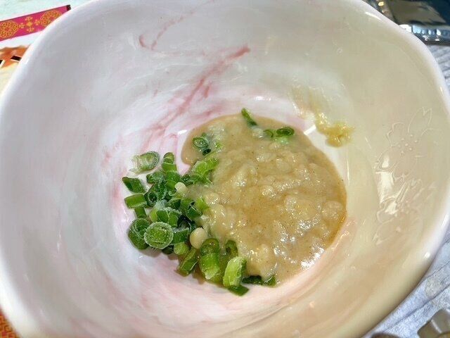 こちらを器に入れました。思ったよりどろっとしています。入れた瞬間にすごくにんにくの良い香りがしました。