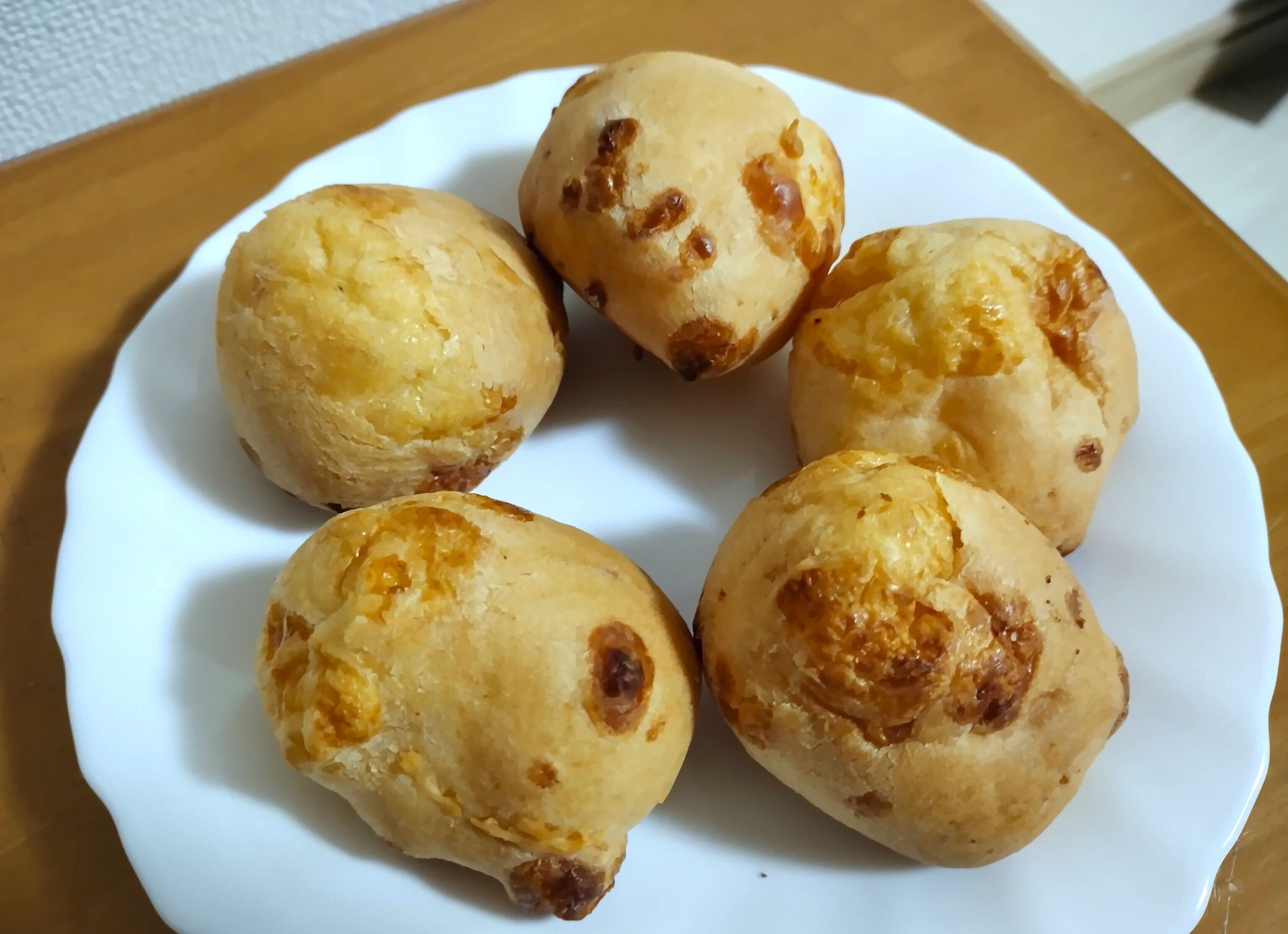 本場ブラジルの「ポンデケージョ」は、タピオカ粉が使われていることが多いのですが、こちらは小麦粉が使用されているようです。小麦粉使用でも、生地はもちもちしています。冷めている状態でもしっとり感があるように感じます。