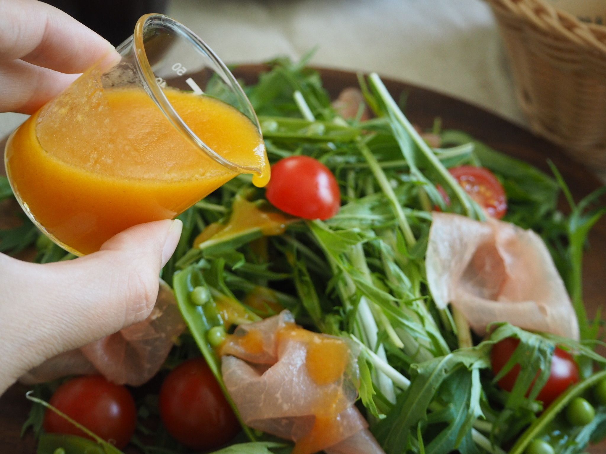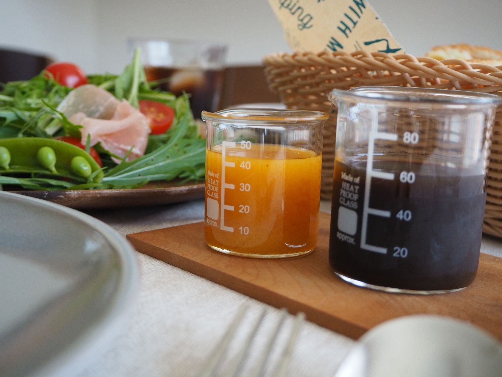 ドレッシングを入れるのにはビーカーが最適!