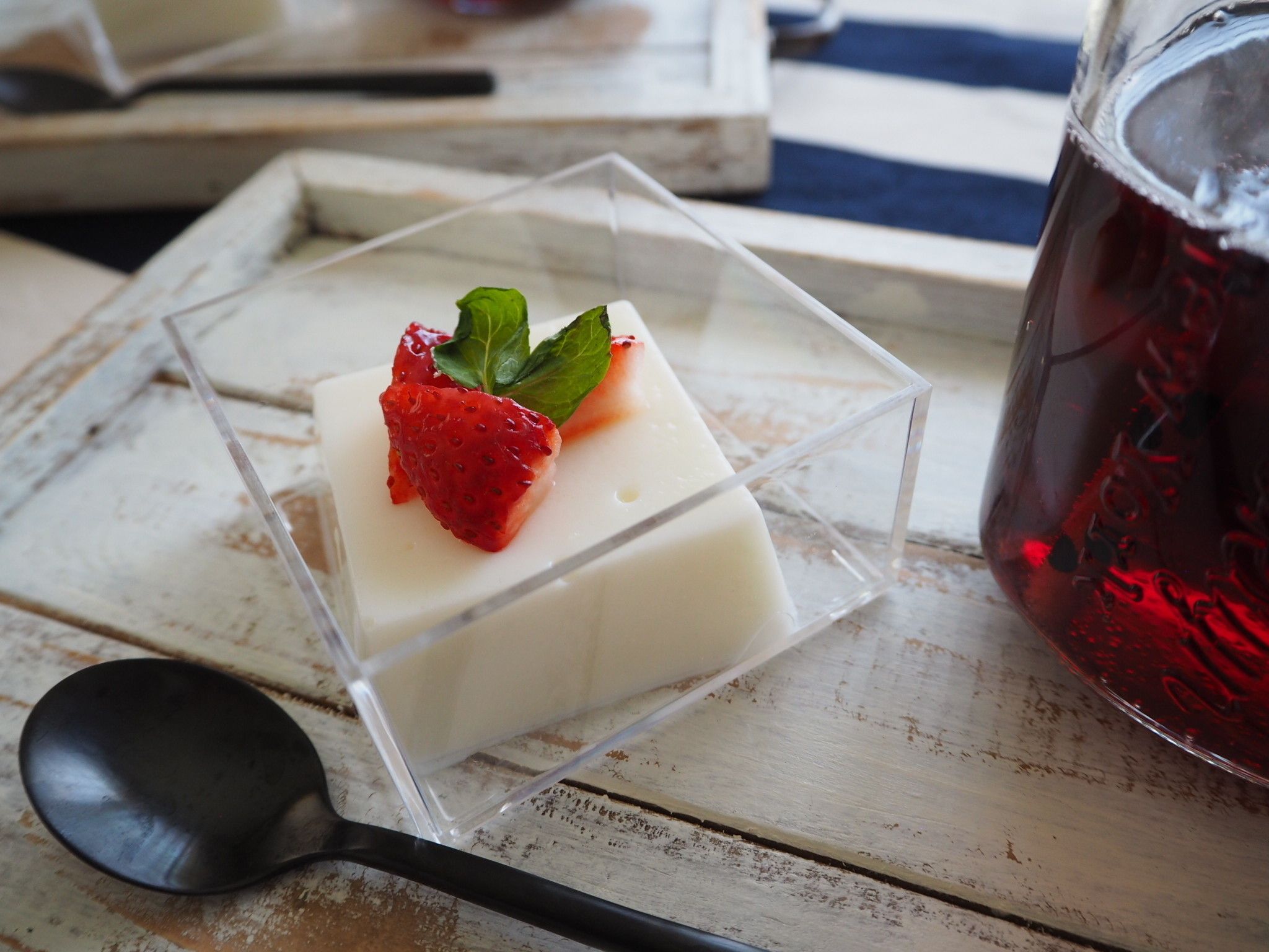 クリアの枡を買おうとするとお値段も張りますが、これなら100円。涼しげな演出にぴったり!収納するときスタッキングできるのも◎。