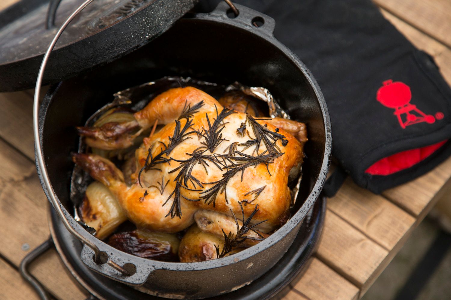 アウトドアグッズの中でも定番中の定番「ダッヂオーブン」を使うと、どんな料理もおいしく仕上がります。圧力鍋のような効果で肉や野菜を柔らかく仕上げたり、オーブンとしてパンやピザを焼いたり、煮込み料理を長い時間保温してくれるスグレモノ。しかも、火加減を気にせず放っておいても大丈夫なので、家では面倒な時間がかかる鳥の丸焼き料理なども簡単にできます。