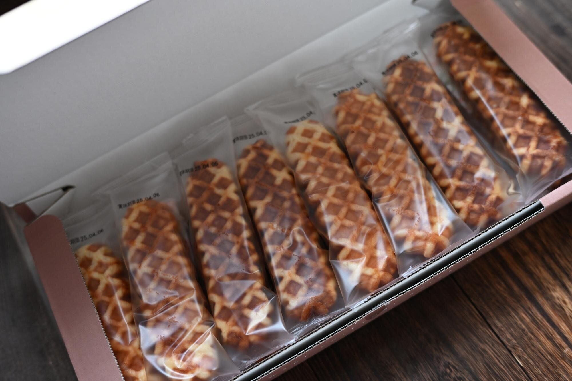 さらに、生地にはほんのりとしたお砂糖の粒が入っているのですが、これが噛むたびに心地よい食感を与えながら甘さを引き立ててくれるんです。まるで焼きたてのワッフルを楽しんでいるような贅沢な味わいが広がり、一口ごとに幸せな気分になれますよ!