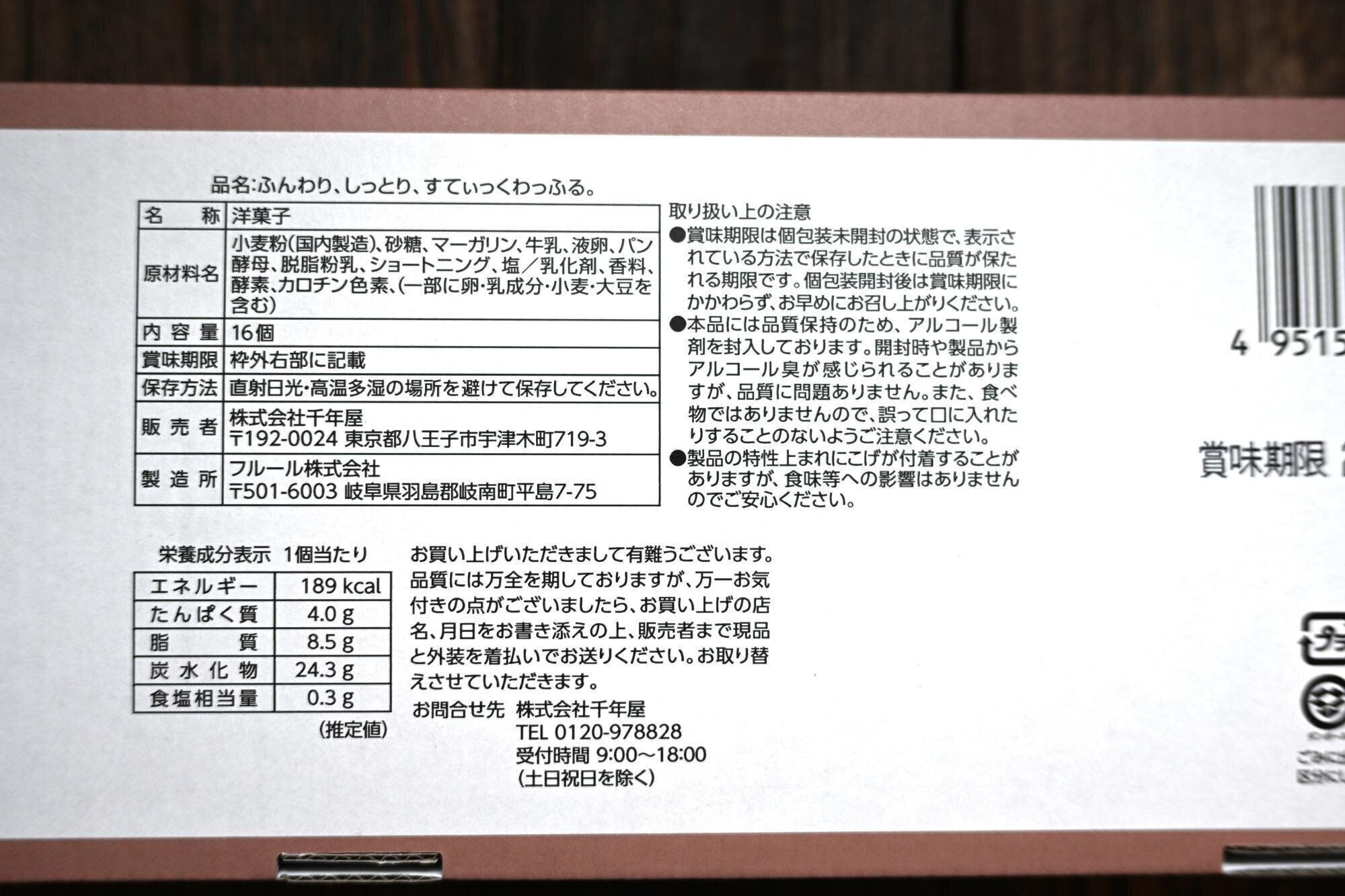 内容量:1箱16本入り(個包装)