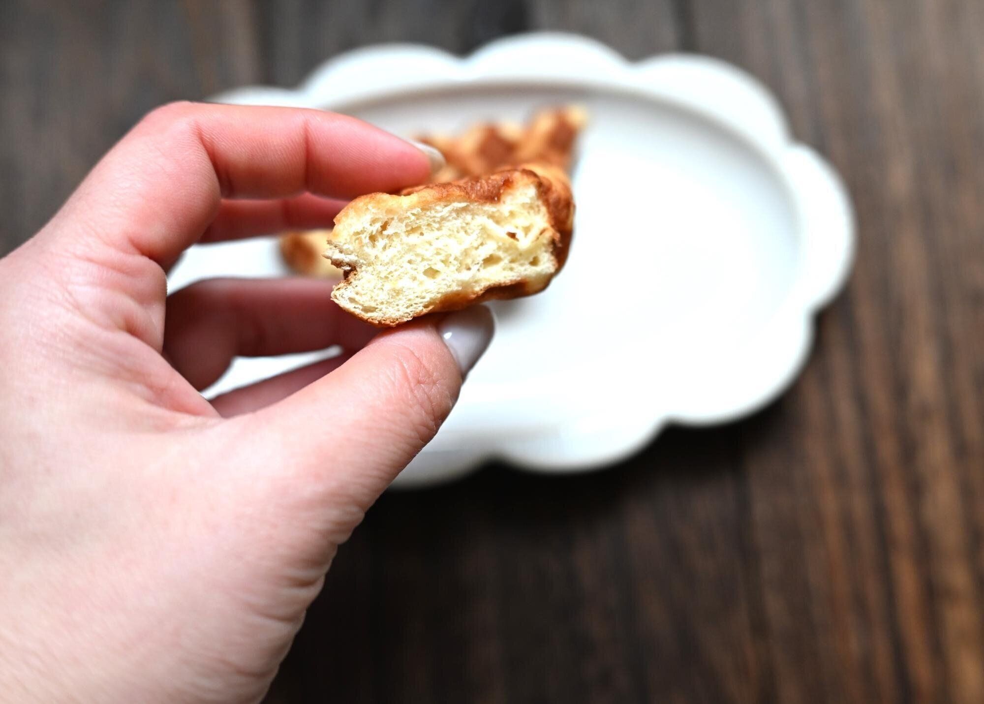 外はカリッと香ばしくなり、ホイップクリームやフルーツを添えればカフェ風スイーツに大変身しますよ。
