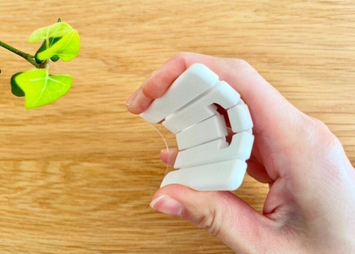そして一番の特徴としては、手でギュッと握るとカーブさせることができるというところです。