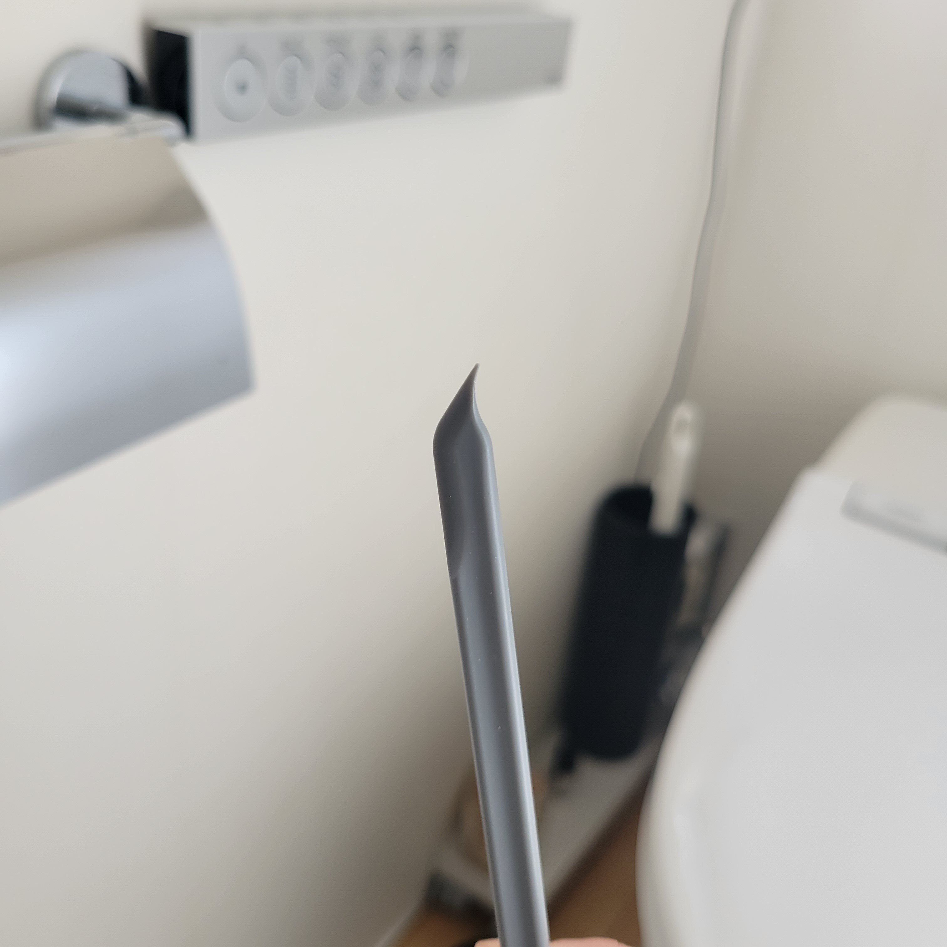 トイレットペーパーの上からクルッとなぞったら、やはり少し汚れが取れました。このピンポイントお掃除ヘラ、本当に優秀です!