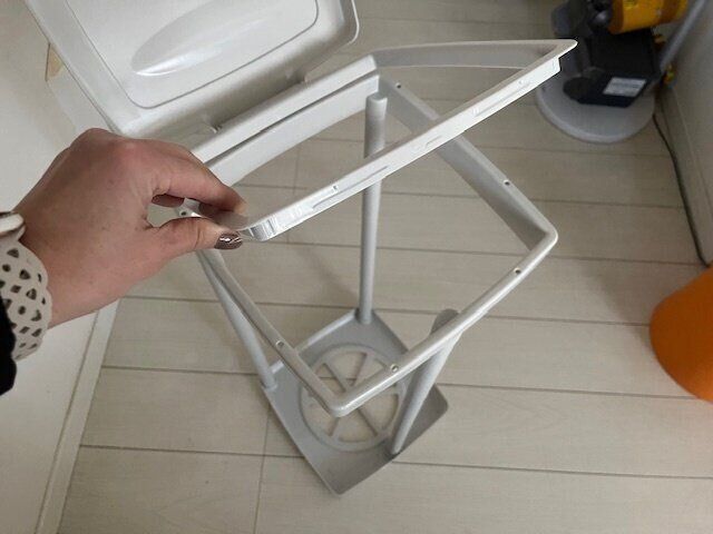 こちら、組み立て式のゴミ箱ホルダーです。こんな立派なものがまさかの550円で売っているとは驚き。