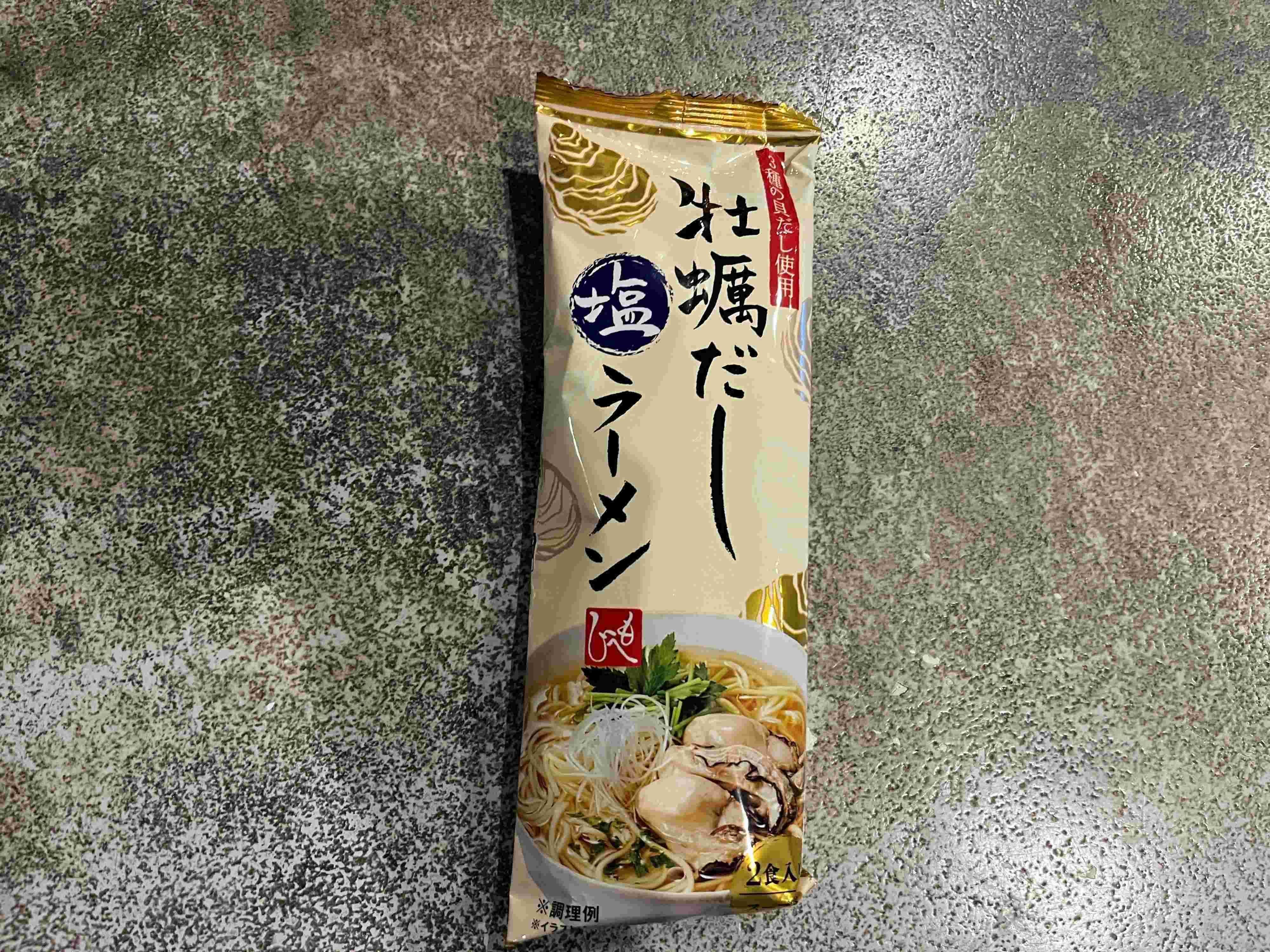 「牡蠣だし塩ラーメン」という商品名ではありますがそこまで牡蠣の風味は強くなく、3種類の貝のうまみがバランスよくまとまっています。粉末のスープだとは思えないほど、奥深さのあるスープだと感じました。