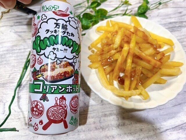 普段、揚げたポテトに塩をかけるだけだったのですがこのコリアンホットをかけるとまた違ったおいしさになります。さらに子ども達はこの万能クッキングたれにマヨネーズを混ぜディップを作りポテトに付けて食べていました!これもおいしい。
