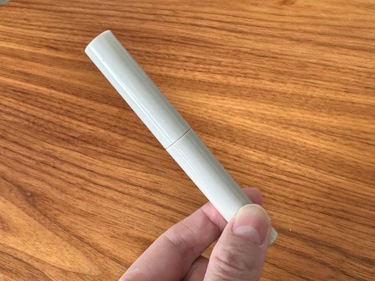 マスカラのような見た目の、シンプルなスティックになっています。サイズも約11cmとコンパクトなのも嬉しいです。