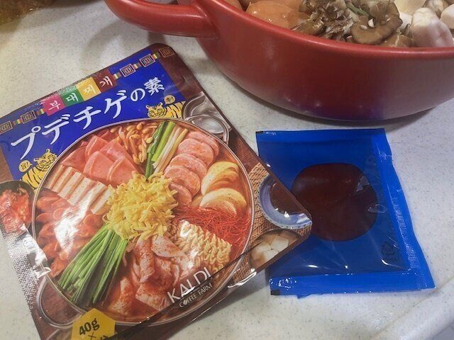 「プデチゲ」って聞いたことがない!韓国料理の定番料理だそうです。韓国語でプデは「部隊」、チゲは「鍋」という意味で、食堂から家庭までとても人気のある鍋。パッケージの写真、見るからに美味しそうです。