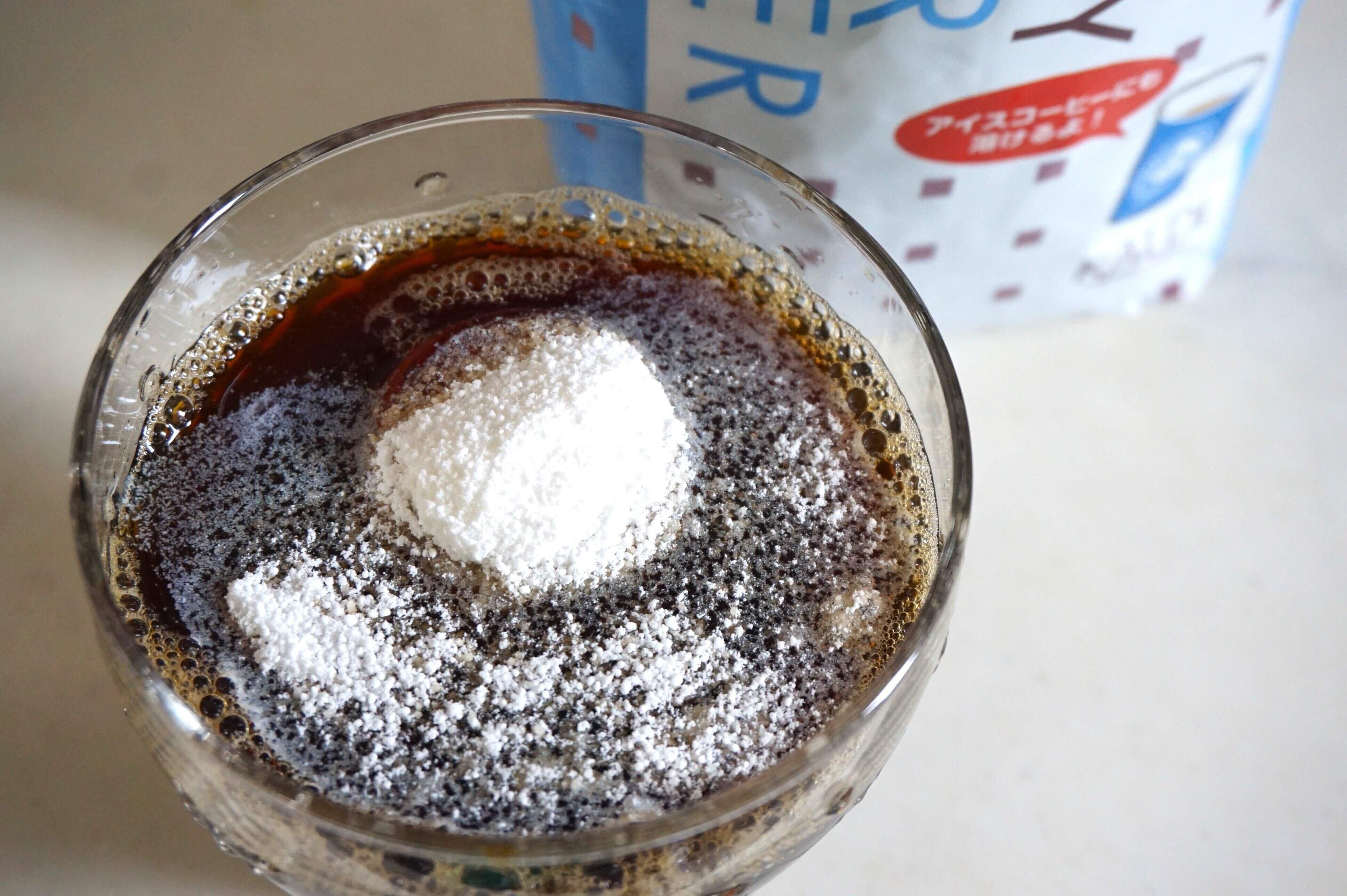 インスタントコーヒーでアイスコーヒーを作る場合は、コーヒーとクリーミーシュガーパウダーを先に少量のお湯で溶かすのがおすすめです。