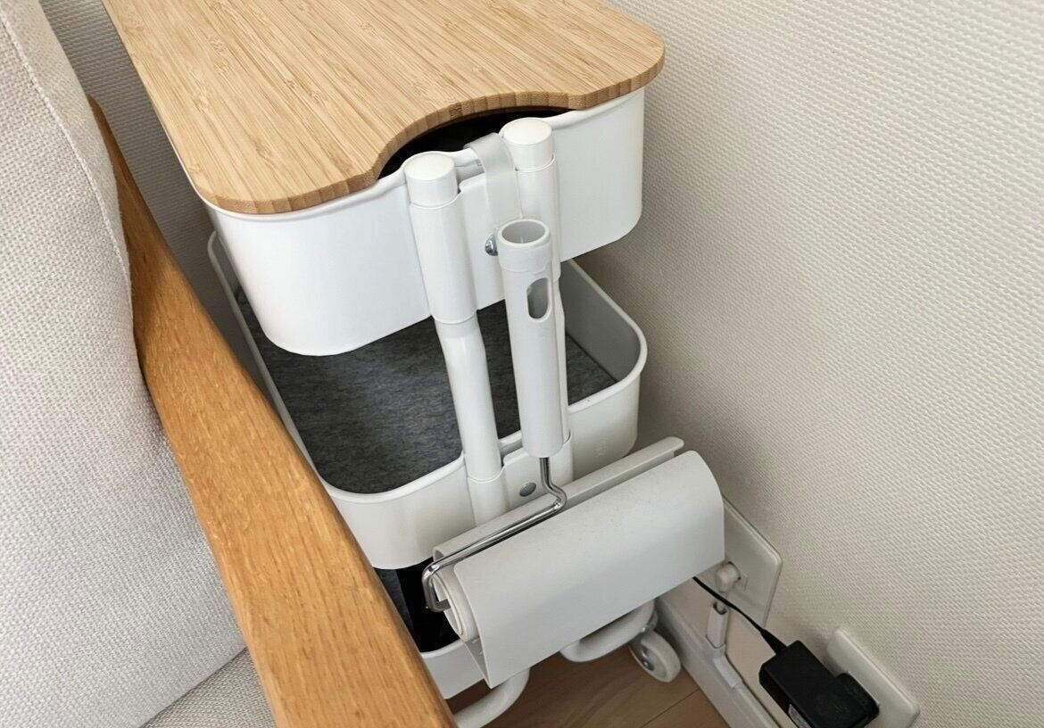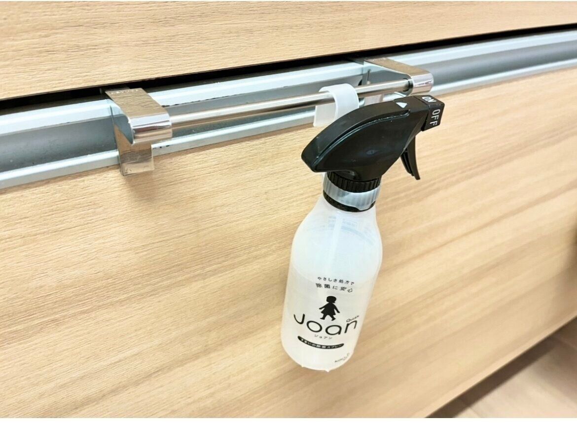 アルコールスプレーなど、サッと手の届きやすいタオルバーに引っ掛けておけば掃除や除菌したい時にすぐに使えるのですごく便利です。