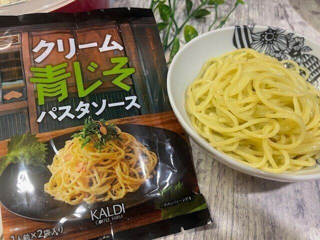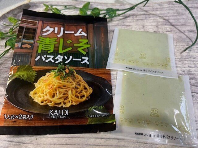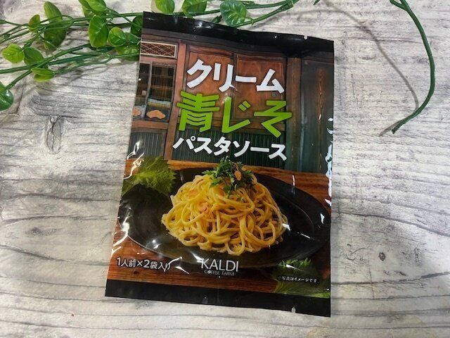 まずはこちら。【カルディオリジナル】「クリーム青じそパスタソース」1人前×2袋 213円