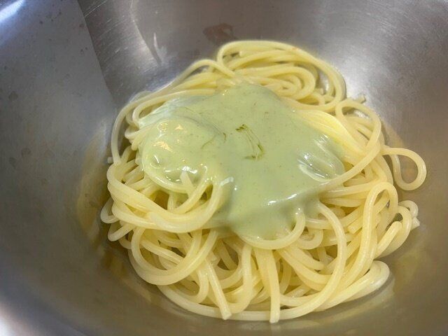 作り方は本当に超簡単!茹でたパスタにソースをからめるだけ。本当にこれだけ。