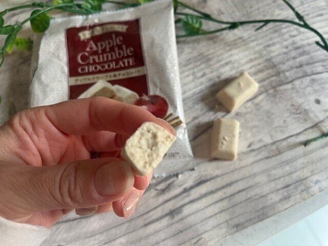 今回の「アップルクランブル風チョコレート」ひとくち食べただけで贅沢感も味わえ、