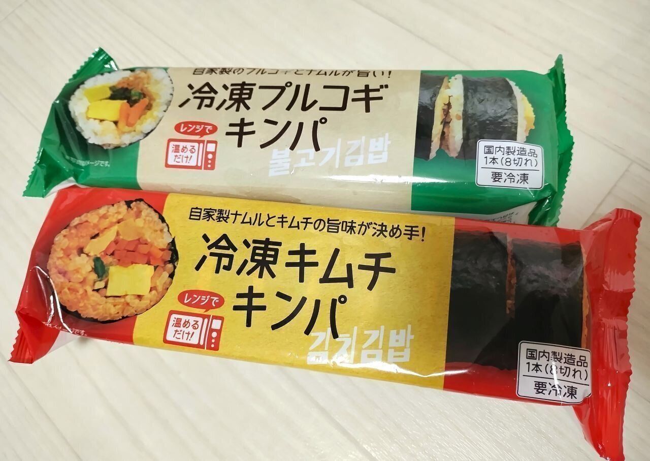 それがこちらの「冷凍プルコギキンパ」と「冷凍キムチキンパ」です。価格はそれぞれ354.24円(※2025年4月筆者購入時)で、電子レンジで温めるだけでキンパが楽しめますよ。