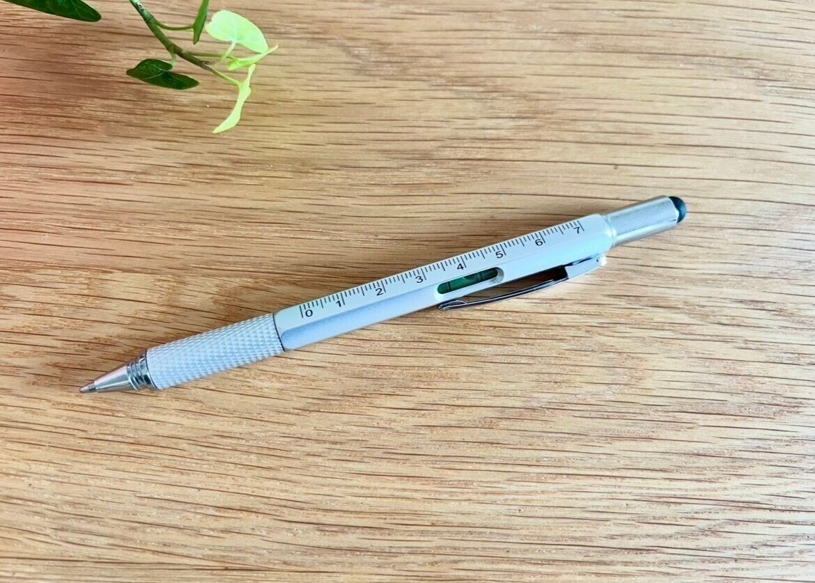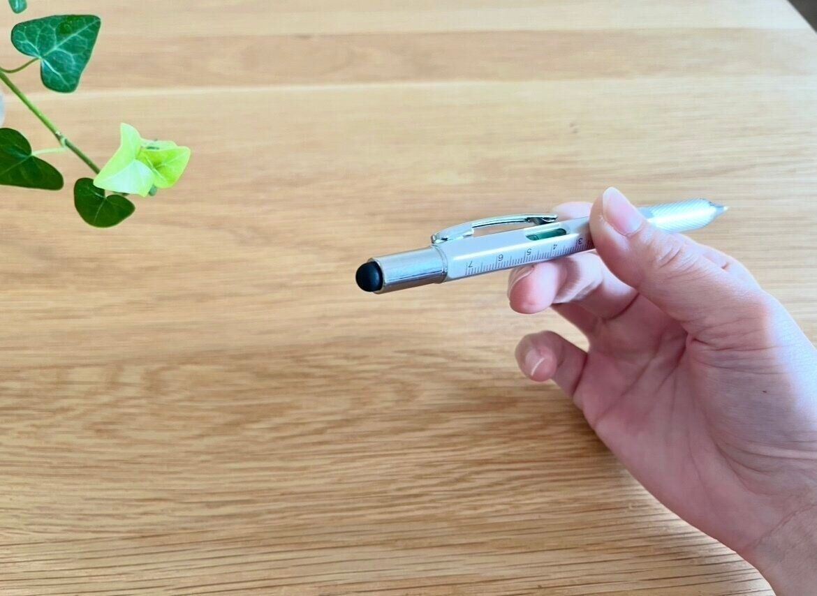 ダイソー「多機能マルチペン」には、ボールペンとタッチペン、スケールと水平器とドライバーという5つの機能が1本に集約されています。全部そろえるとなるとかさばるし、費用もかさむ...。でも「多機能マルチペン」ならペンケースに入れて手軽に持ち運べるし、しかも破格の110円!もはや買わずにはいられない!みなさんもぜひ、使ってみてはいかがでしょうか?
