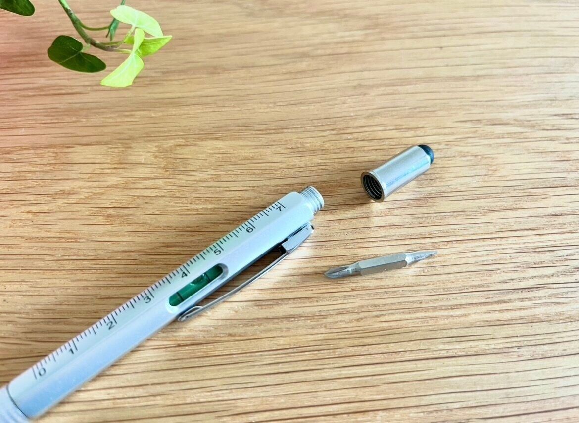 5つ目の機能は、ドライバー。タッチペンの部分をクルッと回すと、中からプラスとマイナスのドライバーが出てきます。ドライバーの規格は、プラスが#1でマイナスが3.0mm。