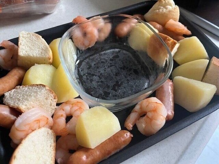 今回はパン、じゃがいも、ウインナー、海老を用意しました。