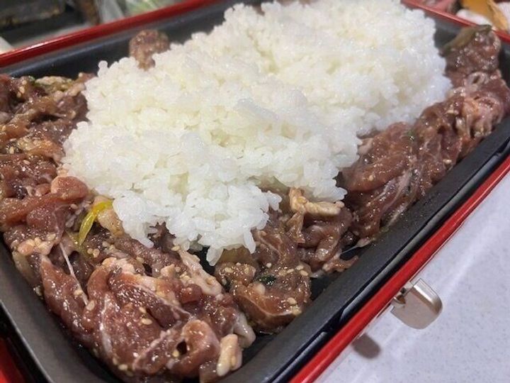 いつもの味付け肉もホットプレートでごはんと一緒に焼けば一気におもてなし感が出ます。