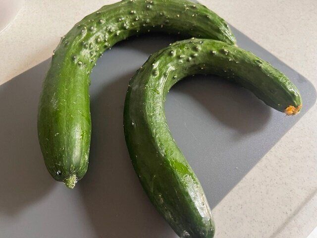 きゅうりを用意します。今回は2袋分作ろうと思っているので2本用意しました。
