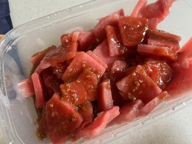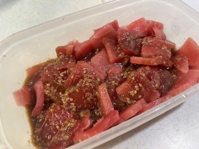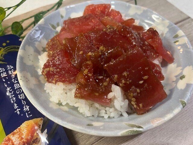 たれ自体が甘じょっぱいと書いてあるので、まぐろも漬け丼のように食べられるかなと思いマグロを漬けてみることにしました。