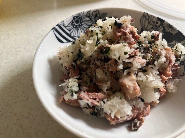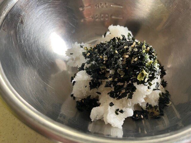 ザクザクの食感も残っています。味つけはいりません。ザクザクわかめがねぎ塩味なのでしっかりと大根おろしに吸われ、味がちゃんとします。