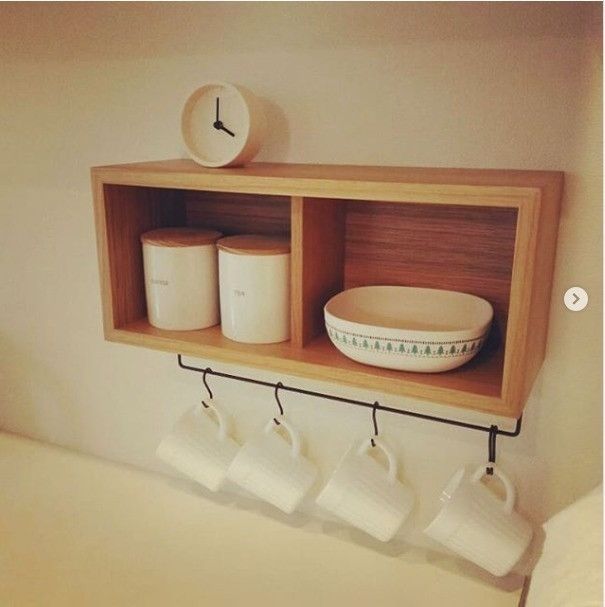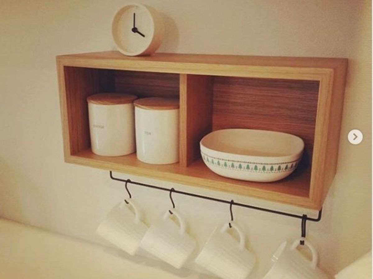 お気に入りのマグカップは、アイアンバーとフックで吊るす収納をしてみませんか?吊るす収納の際は、アイアンバーをしっかり固定すれば落下の心配もなくなります。