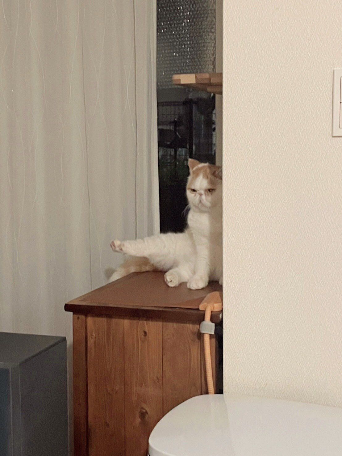 おじゃるです!さん(@ojaru67433374)が投稿したのは、愛猫おじゃるちゃんの、おもしろ可愛い写真です。ふと見てみると、なんとセクシーポーズをしていたおじゃるちゃん。その姿に「可愛すぎ」「近くで観劇したい」などの声が集まりました。