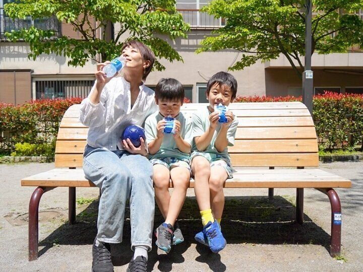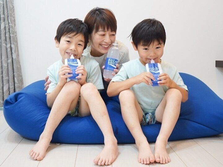 「兄弟そろって、スポーツをしているのでこまめな水分補給を心がけています。休憩のたびに飲むようにしていますが、2リットルでも足りないことも。お出かけする時は1人1つ水筒を持つように。ポカリスエットは長い時間にわたってカラダを潤し続けることができるので心強いです。また適度な甘さもありおいしいので、子どもから進んで飲んでくれるのも助かります。実は糖質は、水分のカラダへの吸収を早めるための働きもあるのだそう」