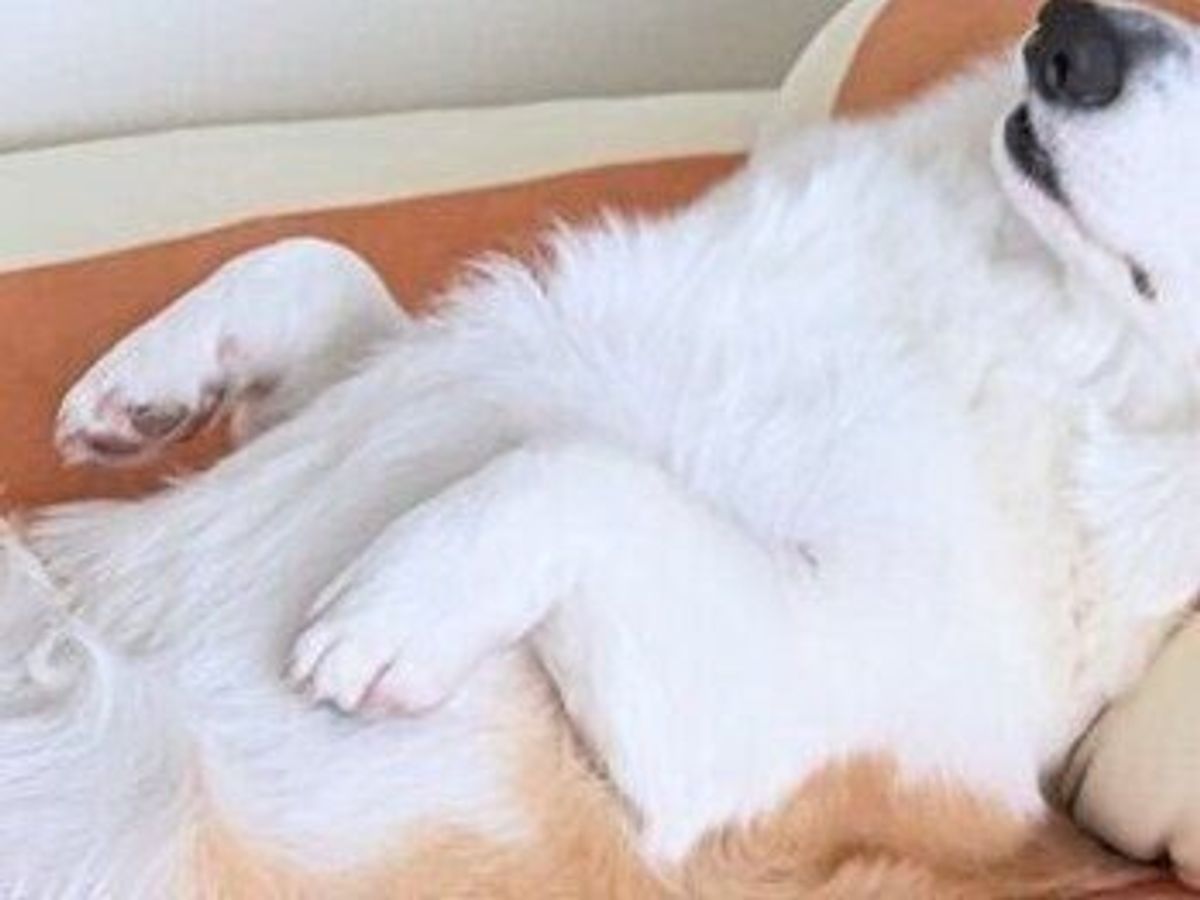 こまち@彩さん(@komachiaya_)の愛犬・こまちちゃんが13万件以上のいいねを集めたのは、飼い主さん家族の食事を待っているときの姿。仰向けになりじっとしていたこまちちゃんに飼い主さんは「助かるけどさすがに怖いよ」とコメントしました。