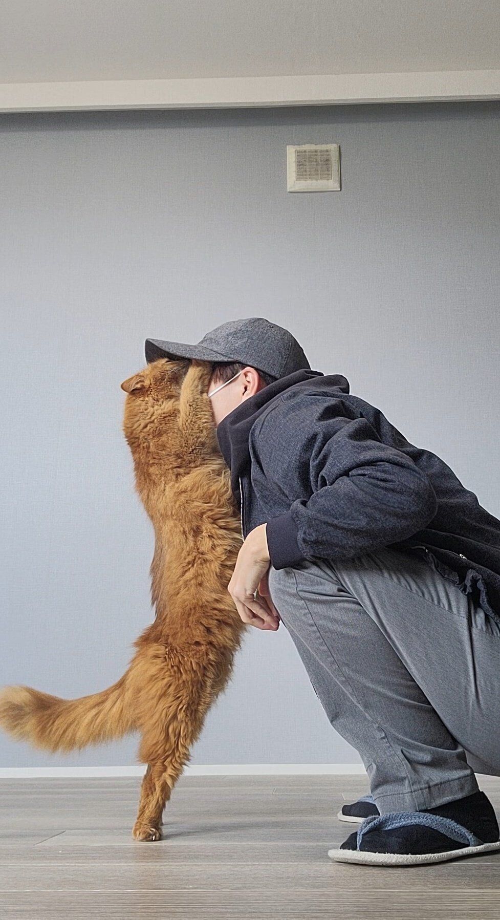 しぴこめさん(@chipie0826)と愛猫・しぴちゃんには、「お出かけのときにする儀式」があるのだそう。その様子をとらえた写真を投稿したところ「心が温かくなる」と10万件以上ものいいねが集まりました。お話をうかがいます。
