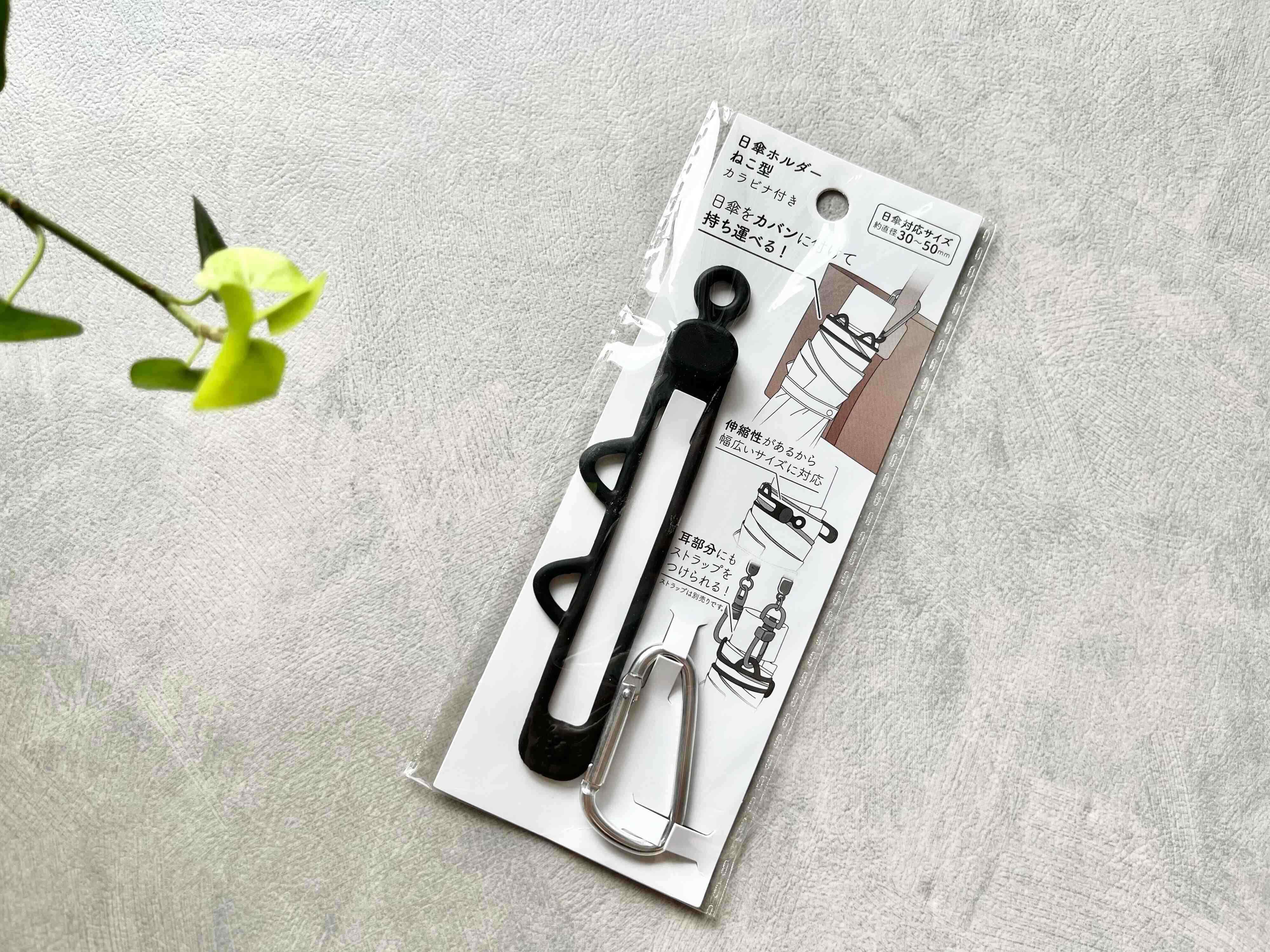 セリアの「日傘ホルダーねこ型カラビナ付き」は、可愛さと機能性を兼ね備えた便利グッズです。