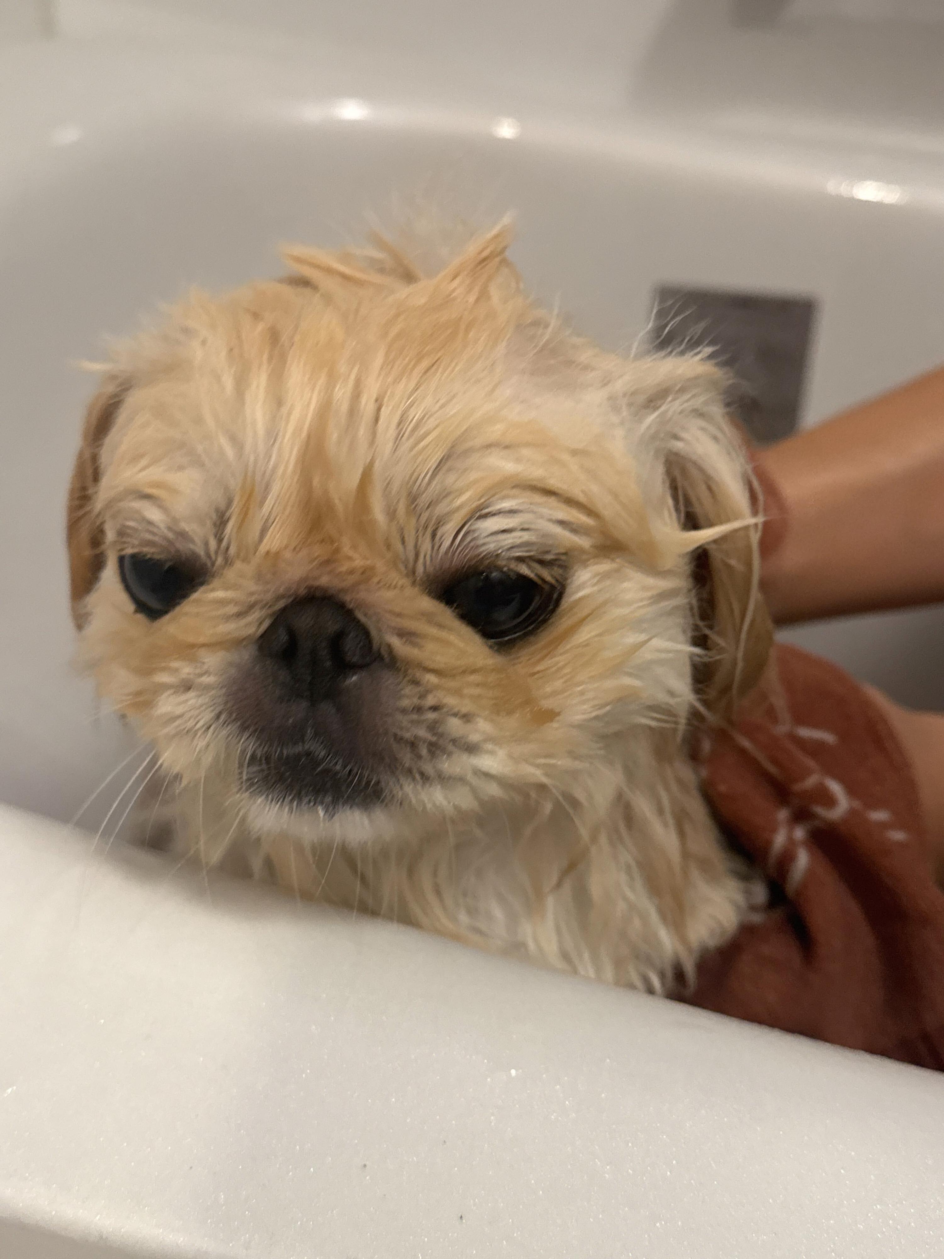 投稿したのは、自宅で愛犬クッペくんをシャンプーしたときの写真。