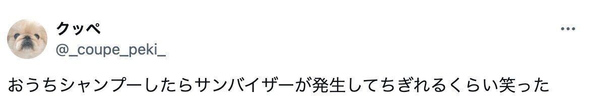 クッペさん(@_coupe_peki_)がXに投稿した写真に、多くの注目が集まっています。投稿したのは、愛犬クッペくんをシャンプーしたときの写真。なぜか前髪にサンバイザーが爆誕してしまったクッペくんに、3.1万件ものいいねが寄せられました。
