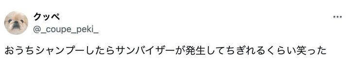 「なぜ笑われているのか、わかっていない様子できょとんとしていました。シャンプーされるのが好きなので、笑っていないで早くしてくれないかな〜と思っていたかもしれません。ですが、私と夫がずっと笑っていたのでクッペもなんとなくうれしそうな感じでした」