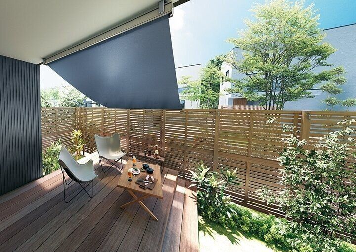 さらに暑さ対策を施すなら、既存の窓の外に取り付ける「スタイルシェード」もおすすめ! 「スタイルシェード」を取り付けると、室内に入る太陽の熱を83%もカットできます。日差しや暑さを外で遮断できるので、心地良い室内温度がキープ。テラスやベランダをほどよく目隠しでき、涼しい日陰を作ってくれるのもうれしいポイント!