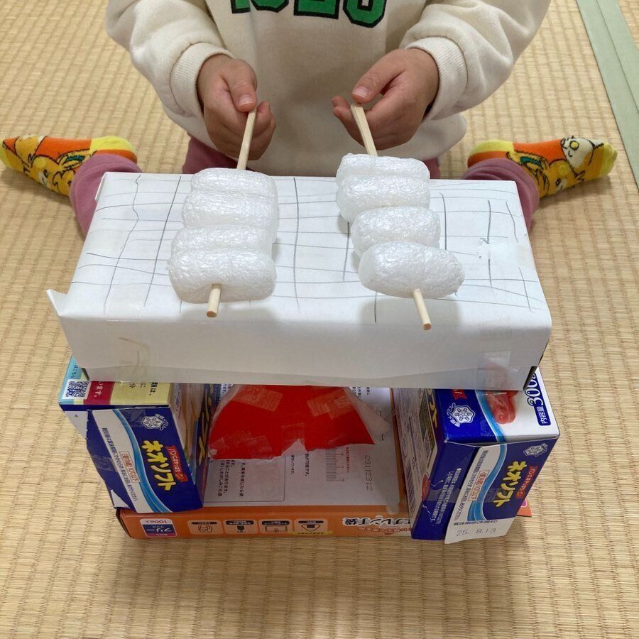 「緩衝材だけだと『マシュマロに見えなくもないなぁ』ぐらいですが、串にさして焼いてるようにするだけでマシュマロにしか見えないですよね。そこに手作りの網や火の愛らしさも相まって『すごい!』と『かわいい!』が一気に押し寄せてきました」