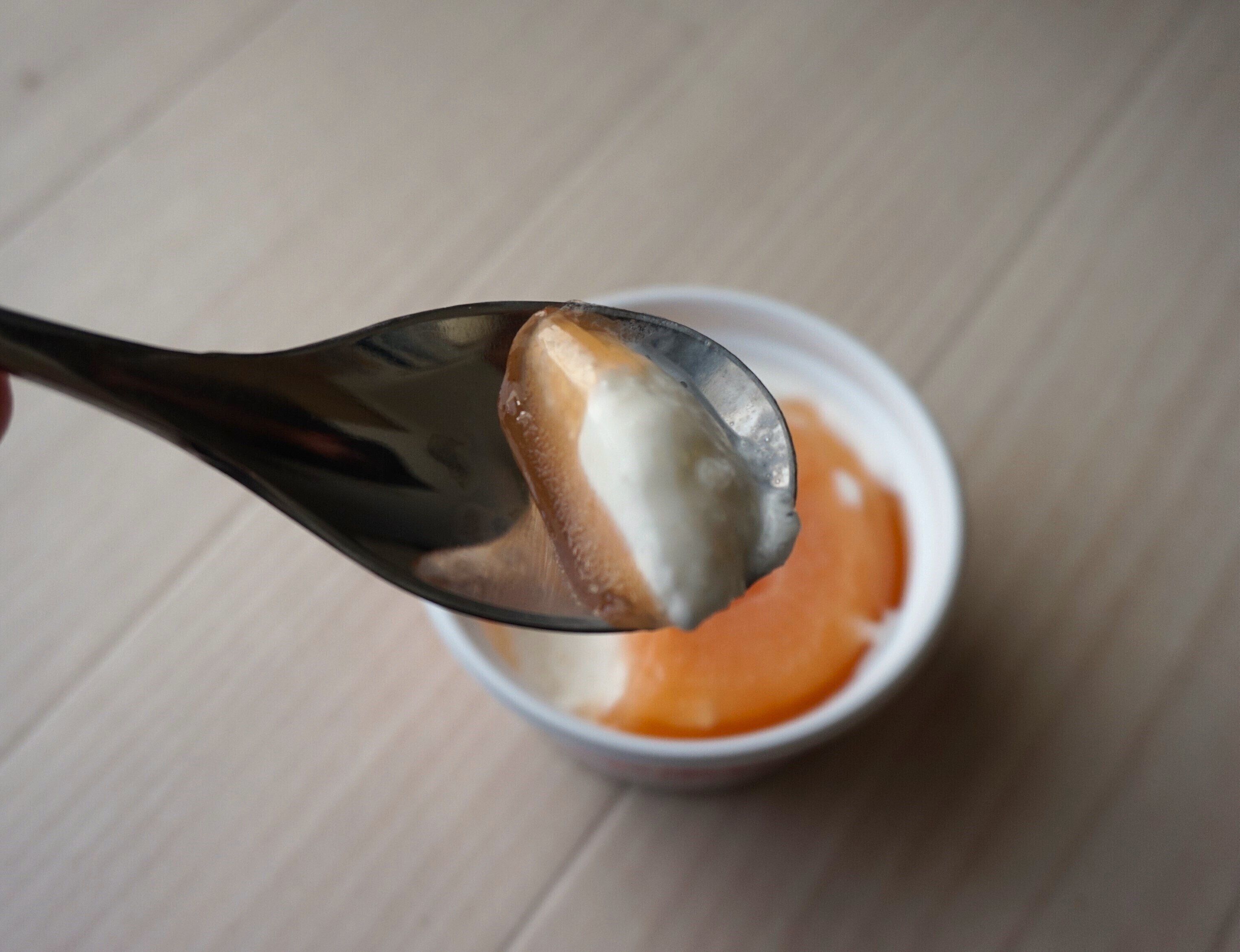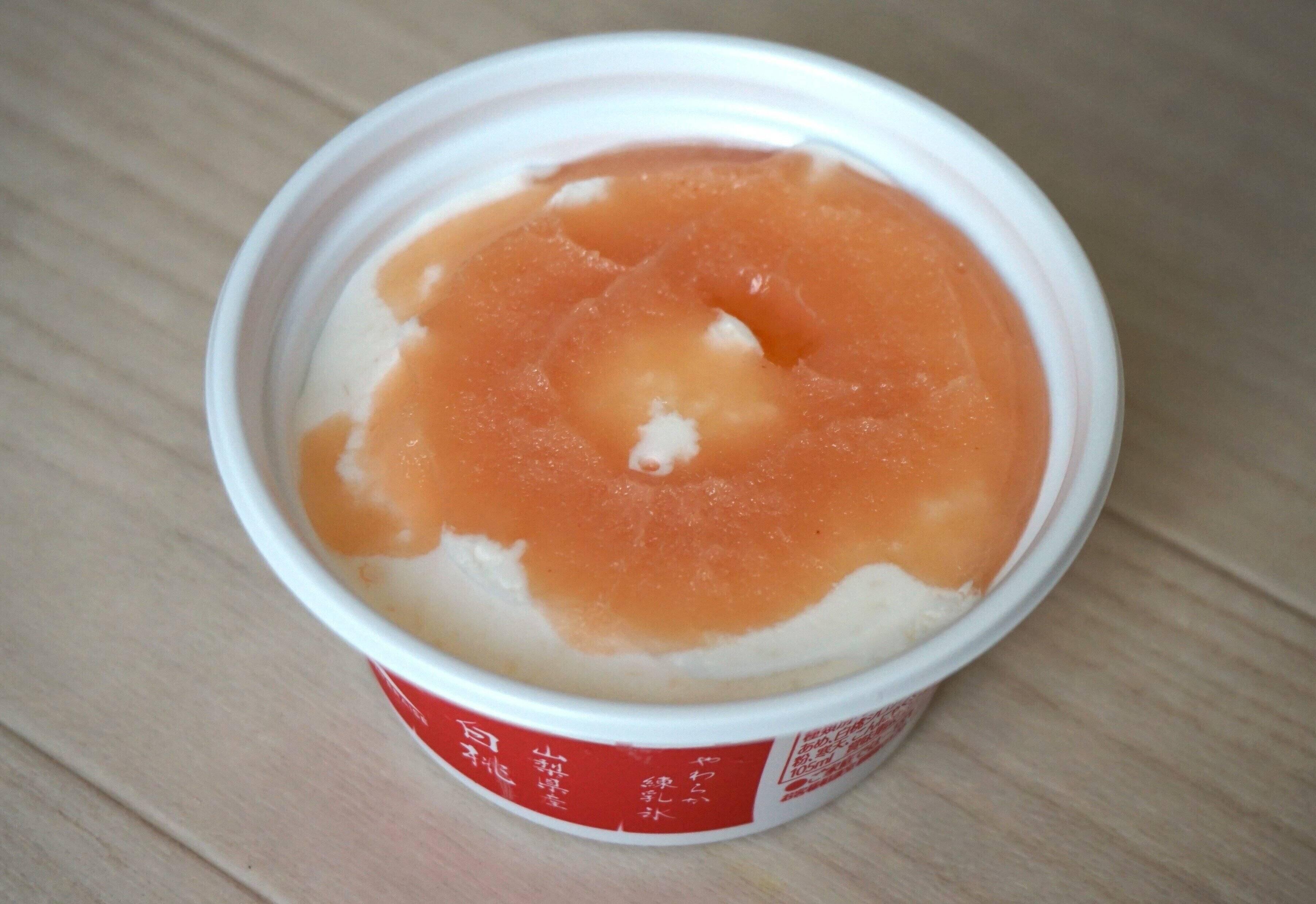 お店で食べるかき氷とはもちろん違いますが、手軽に購入できるかき氷としてはちょっとワンランク上の、かき氷になっています。まさにプレミアムな味わいで、白桃のフルーティーさと練乳氷のミルキーさがたまりません。また練乳氷の中にも桃果肉が入っており、しっかり果実感も味わえますよ。