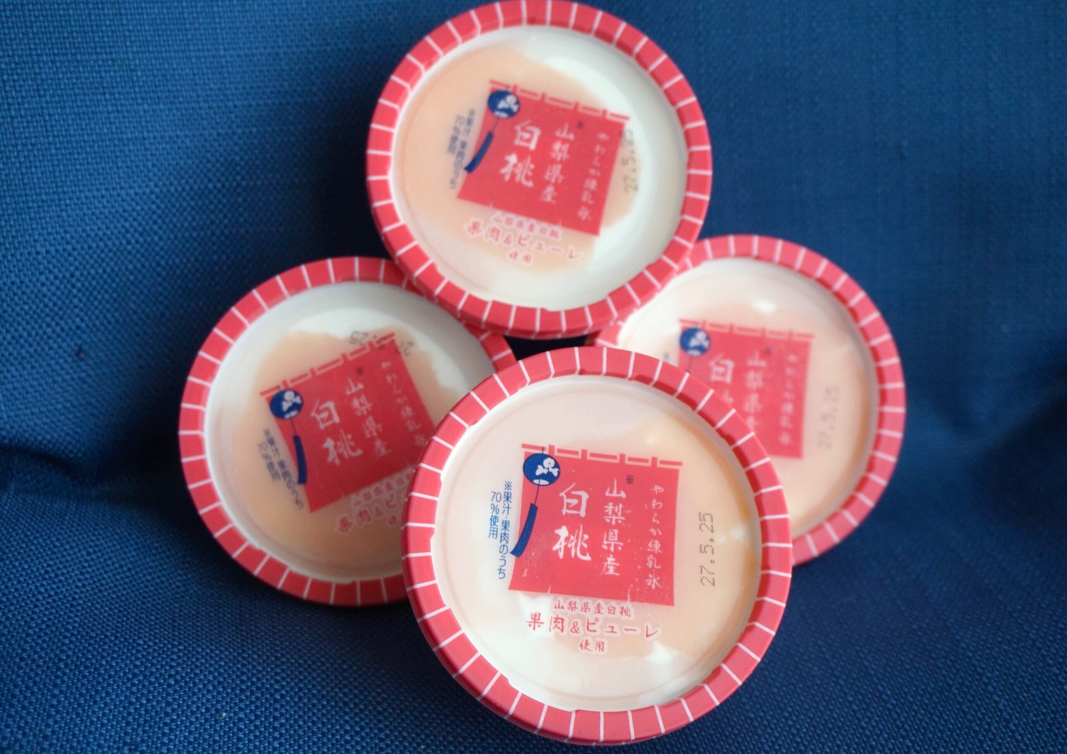 「白州名水かき氷Premium やわらか練乳氷 山梨県産白桃」の価格は、4個入り1パックで594円です(※2025年6月筆者購入時)。4個入りパック以外にも、バラで1個ずつ購入することもできます。1つだけ購入した場合は162円、4個入りパックの場合は1個当たりの価格が148.5円なので、4個入りのほうが少しお得です。