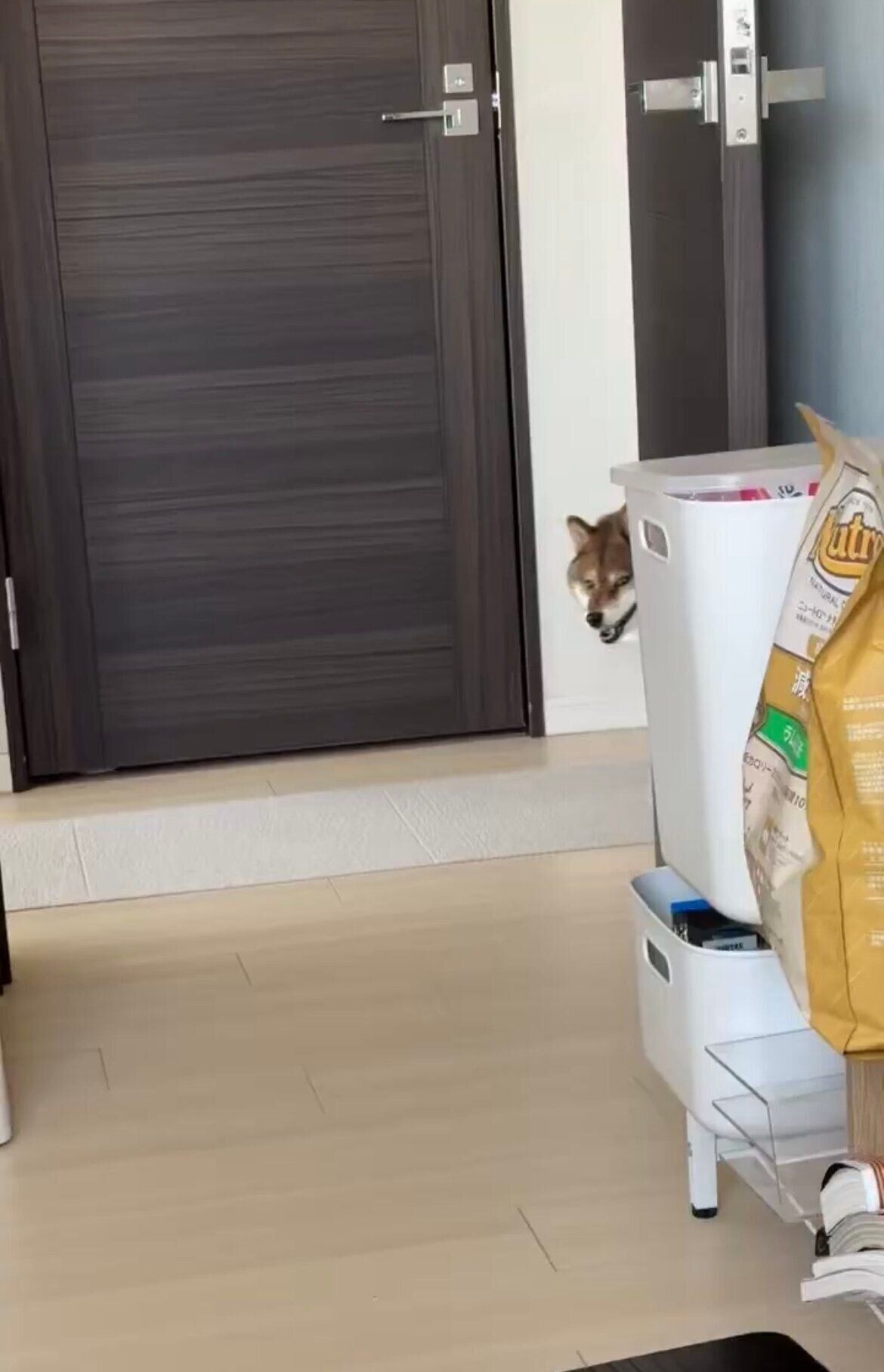 「飼い主と目があった瞬間笑みが消えるのやめて」というコメントとともに投稿された動画がこちら。