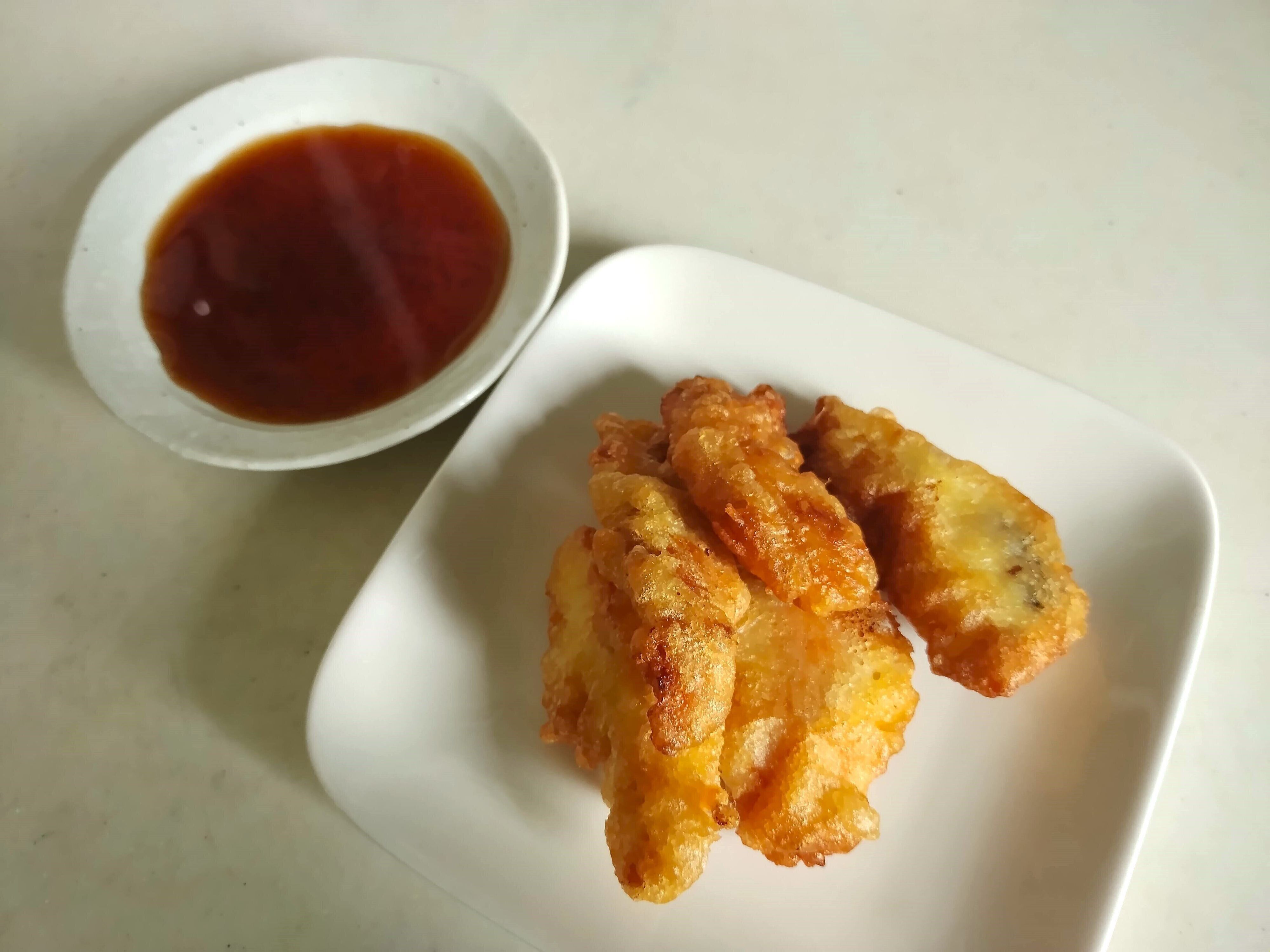 まず衣の準備から。市販の天ぷら粉を既定の分量の水で溶き、適当な大きさに割いたロティサリーチキンをくぐらせ、そのまま揚げます。衣に火が通れば完成です。包丁やまな板を使わなくても簡単にメインができます。